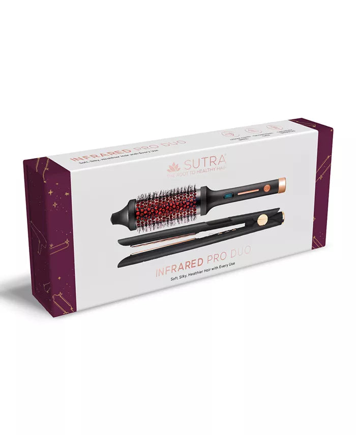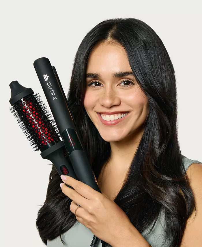Este set dúo de Cepillo Térmico Infrarrojo y Plancha Infrarroja de 1” funciona con las tecnologías Healthy Heat™ de Infrarrojo Lejano (FAR Infrared) e Iónica para alisar, fortalecer y sellar el cabello, logrando resultados brillantes y sin frizz en la mitad del tiempo.