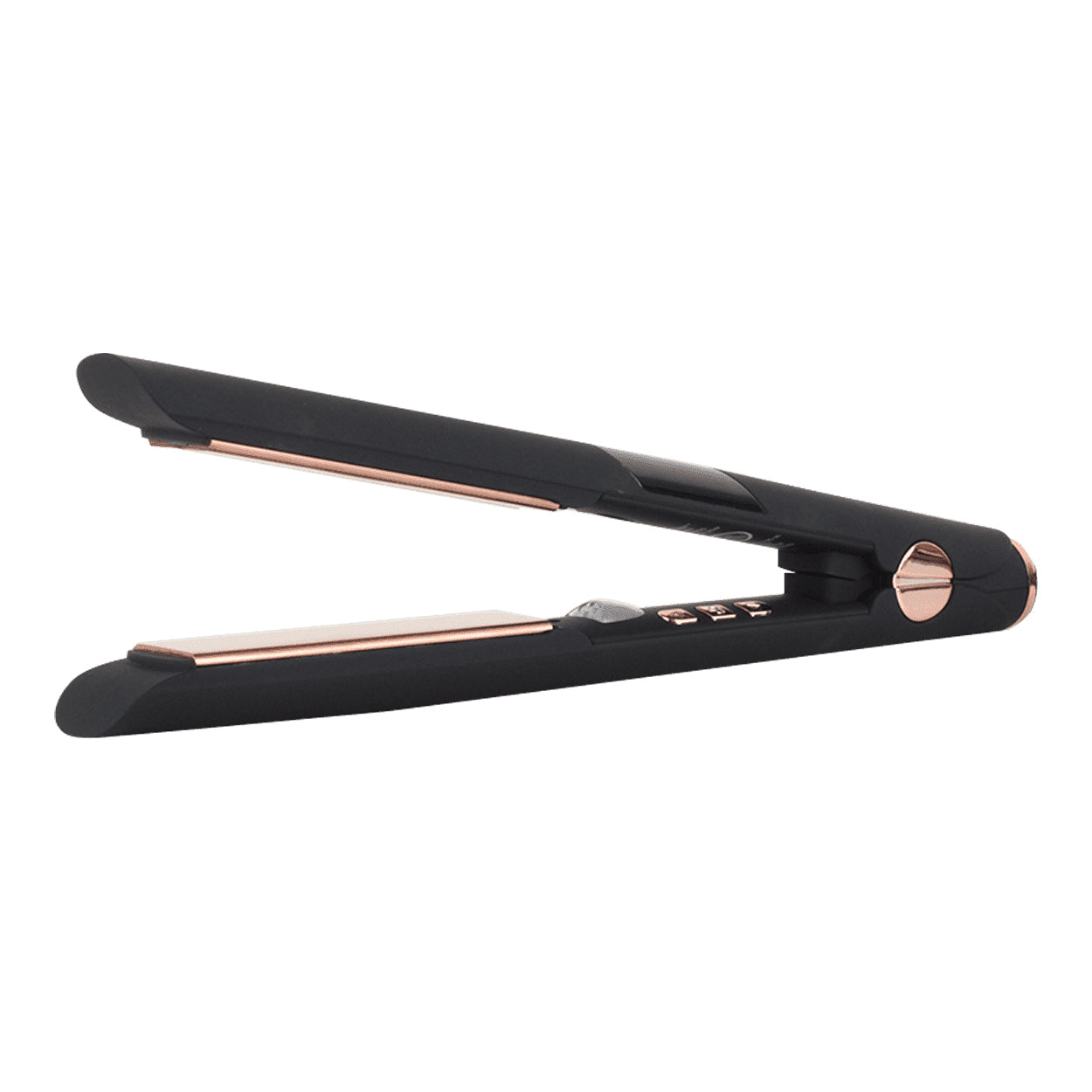 La plancha IR2 ofrece un peinado más rápido y eficiente gracias a sus placas flotantes de titanio en oro rosa y su tecnología de calor infrarrojo lejano, que reduce el daño y sella la cutícula para un acabado suave, brillante y sin frizz.